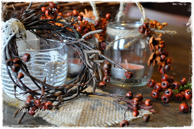 moje jesienne jarzębinki w wiankach, stroikach, lampionach